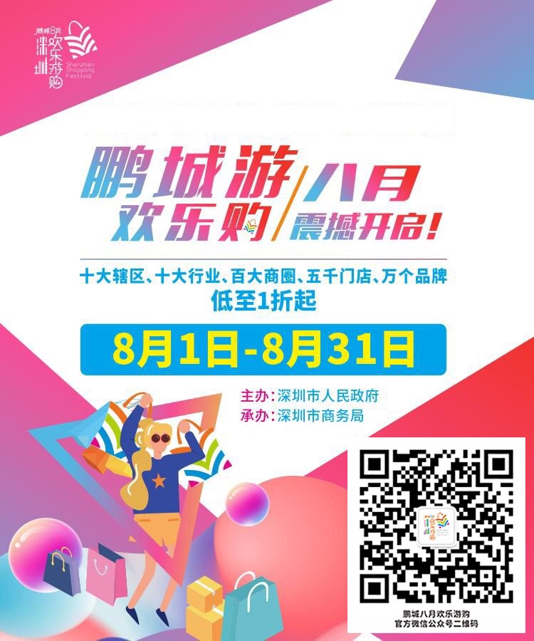8月1日在福田區(qū)大中華國(guó)際交易廣場(chǎng)大堂舉辦開幕式,啟動(dòng)2019“鵬城八月歡樂游購(gòu)”活動(dòng)